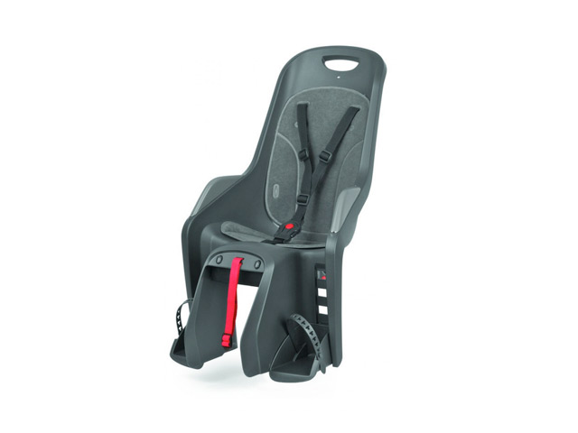 Polisport achterzitje Bubbly maxi zwart/grijs, 3 punts gordel met bevestiging voor op de drager, eenvoudig te monteren dmv draaiknop, vervanger Boodie