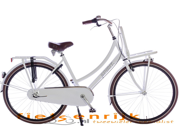De Spirit Cargo N3 28 inch transportfiets is voor de moderne vrouw die graag opvalt. De Spirit Cargo is het een ideale fiets om de dagelijkse boodschappen te doen. Doordat u een rieten mand of een krat op het transportrek kunt monteren is het gemakkelijk boodschappen mee te nemen. De fiets is voorzien van alle gemakken zoals 3 versnellingen, tweebeenstandaard een degelijk slot en een extra luide ding dong bel.